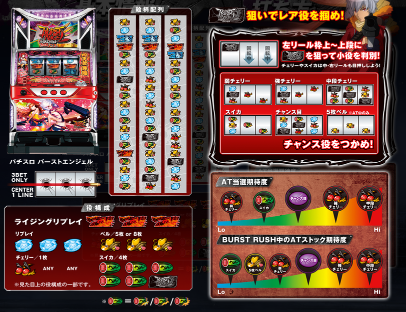 山佐 パチスロ バーストエンジェル 筐体 リール配列とか