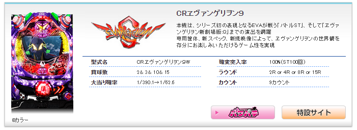 CRヱヴァンゲリヲン9 スペック