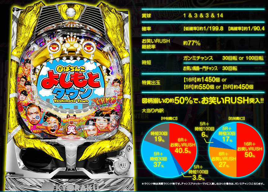 京楽「ぱちんこ よしもとタウン」RTC全台一斉お笑い番組がなんと24週連続更新wwww スペック詳細も判明!