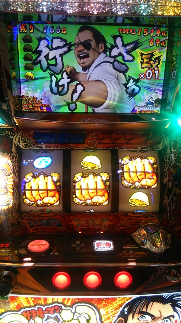 スイカとボーナス中の拳から出世街道入って+100と +10と赤7 割と薄いところ引いたんだろうけど思ったよりマイルドな台でよかった