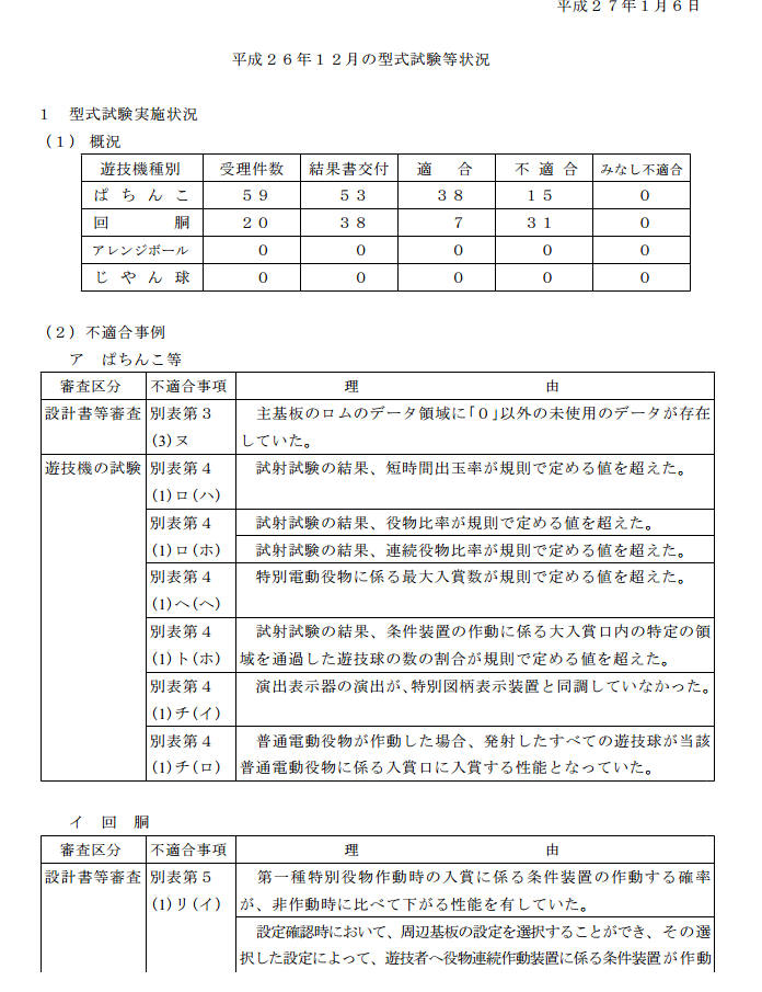 平成26年12月の型式試験等状況 平成27年1月6日
