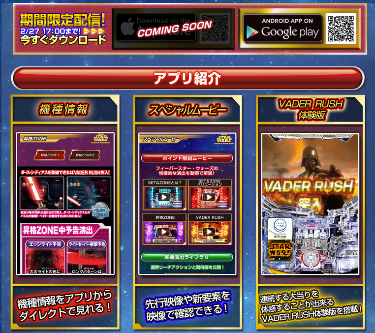 最新パチンコ機種「フィーバー スター・ウォーズ Battle of Darth Vader」の無料オフィシャルガイドアプリが新登場!