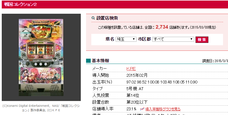戦国コレクション2 設置店舗数は2,734