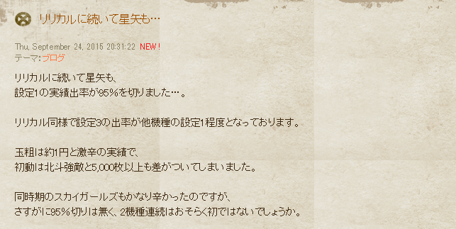 設定1の実績出率が95%を切りました…。