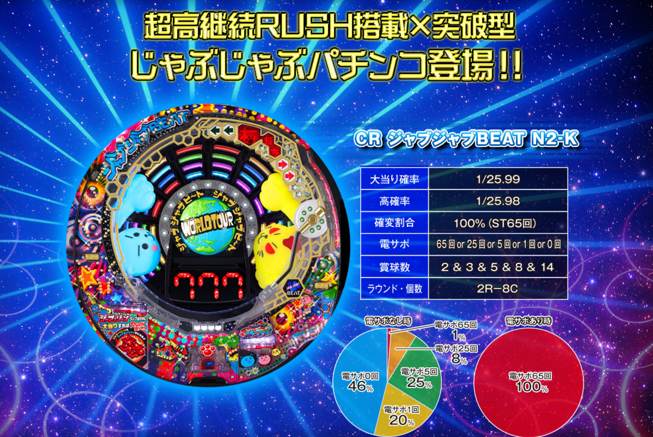 ニューギン「CRジャブジャブBEAT~WORLD TOUR~」公式HPよりスペック