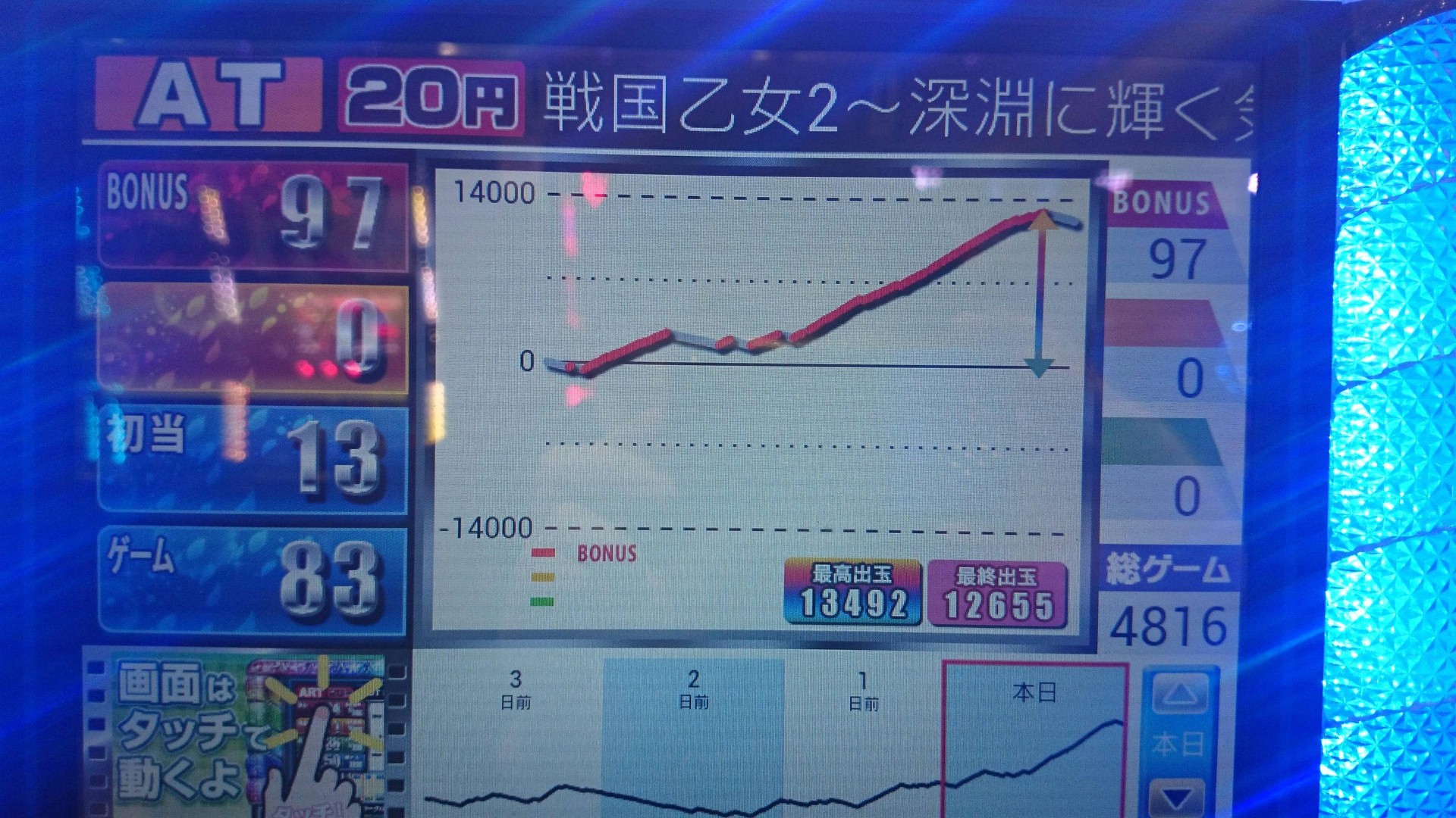 初当たり後の鬼神中に新曲、その次の鬼神で乙女ハ強ク麗しくが流れ高継続らしい流れがあった