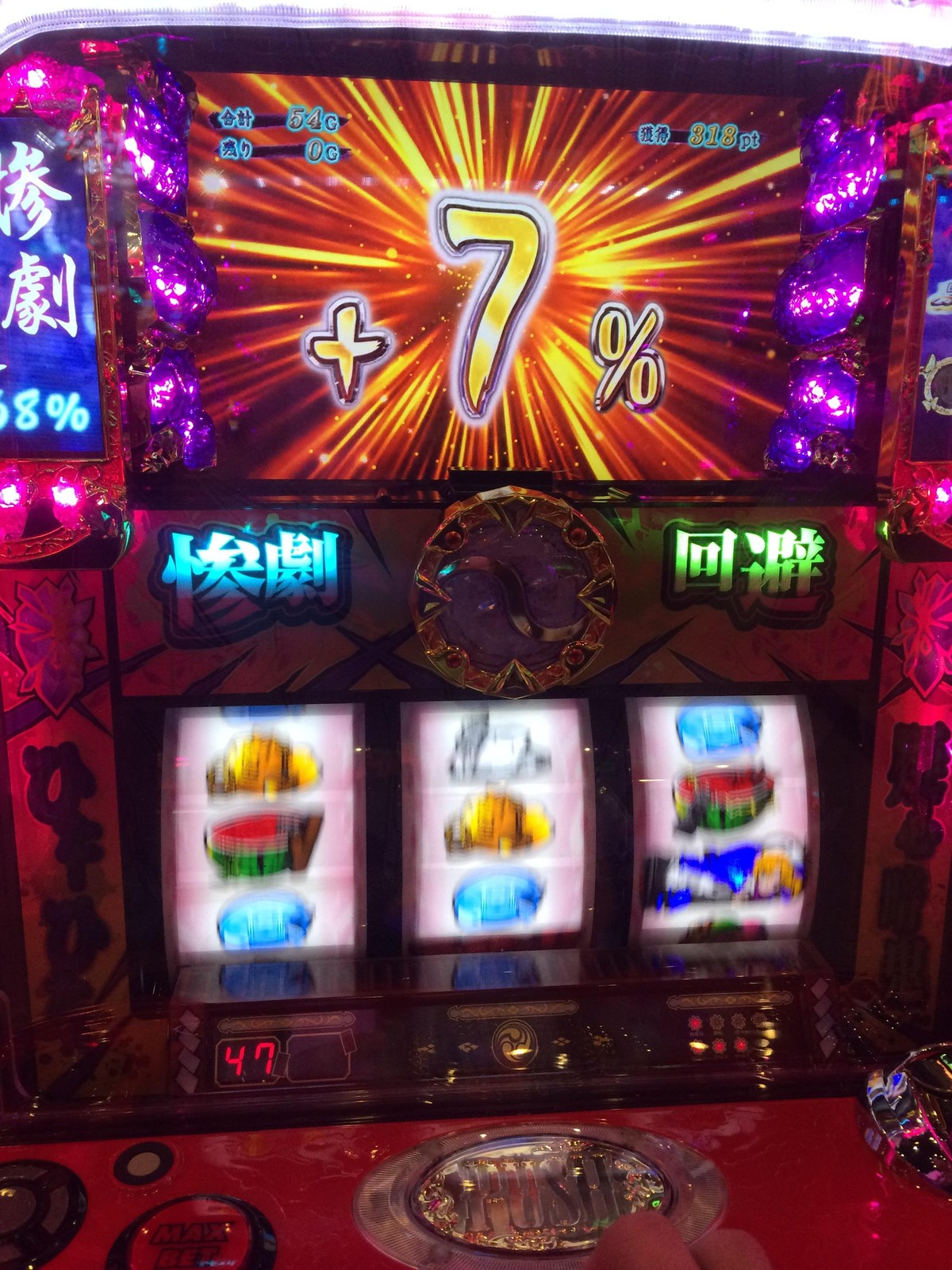 ちなみに中段チェリーや強チェでも100%しかのらないwww
