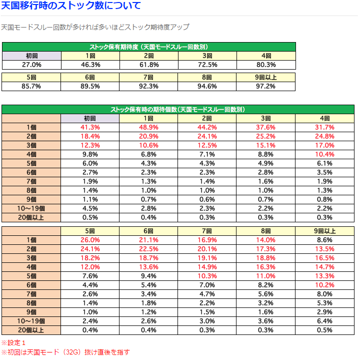 ⇒天国モードスルー回数が多ければ多いほどストック期待度アップ