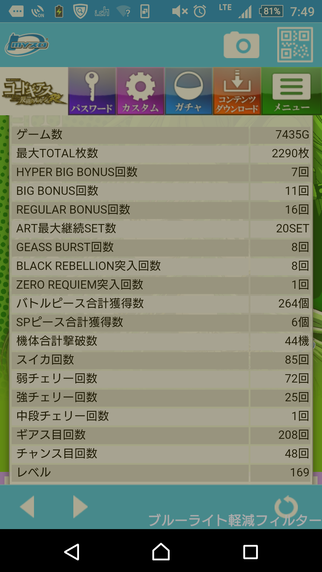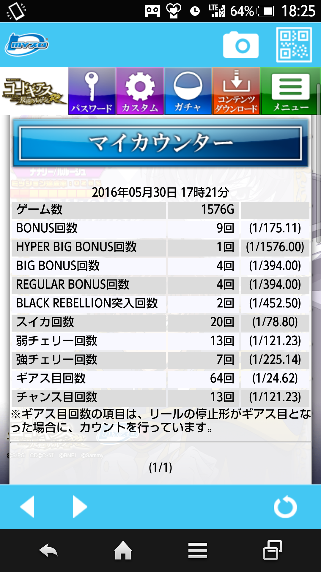 ただ、これ以上伸ばすならボナの引きがよくてギアスラとか引かないと伸びないね。やっぱり新基準機じゃ万枚は射程外な気がする。