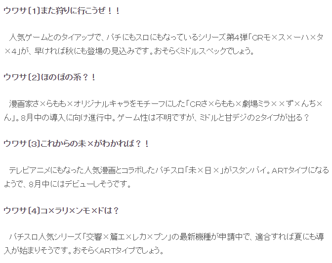 パチンコ・パチスロ新台の噂 CRモンハン4など