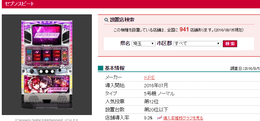 KPE「セブンスビート」設置店舗は941店舗