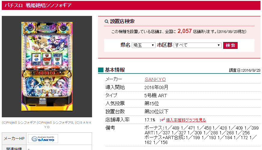パチスロ戦姫絶唱シンフォギア設置店舗は2,057