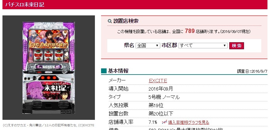 EXCITE「パチスロ未来日記」設置は789店舗