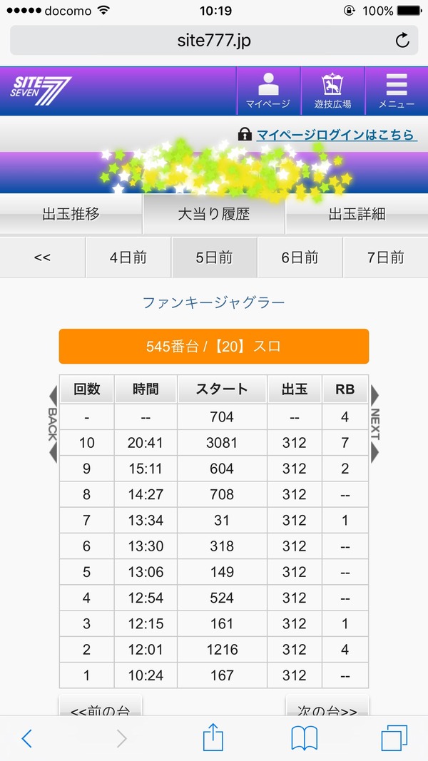 今朝、朝一から打って2GレグからB9/R7の連チャンしたので