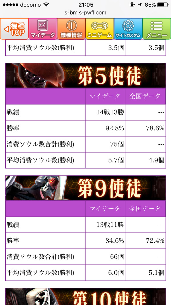 使徒バトルの勝率が見てみたい