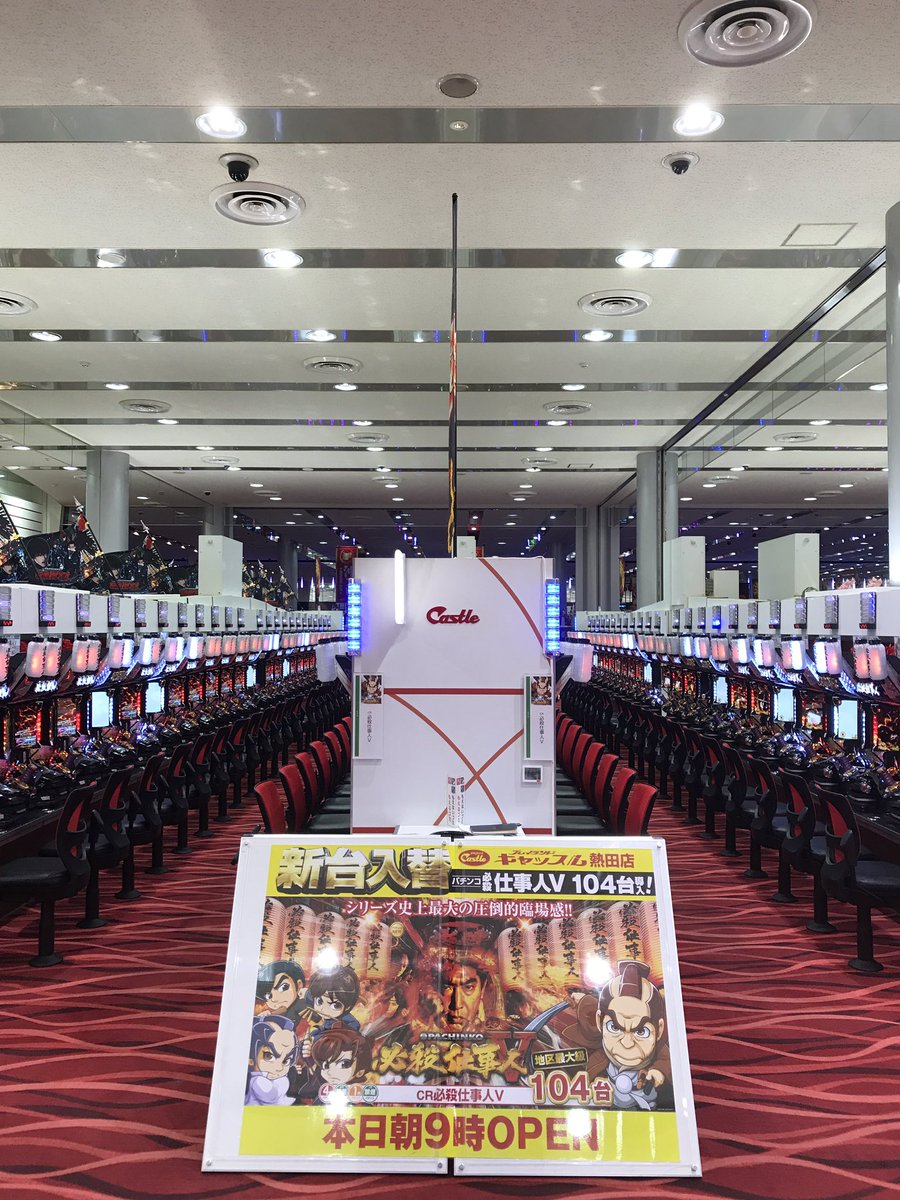 地区最大級!新台「必殺仕事人Ⅴ」104台(╹◡╹)朝9時開店です。