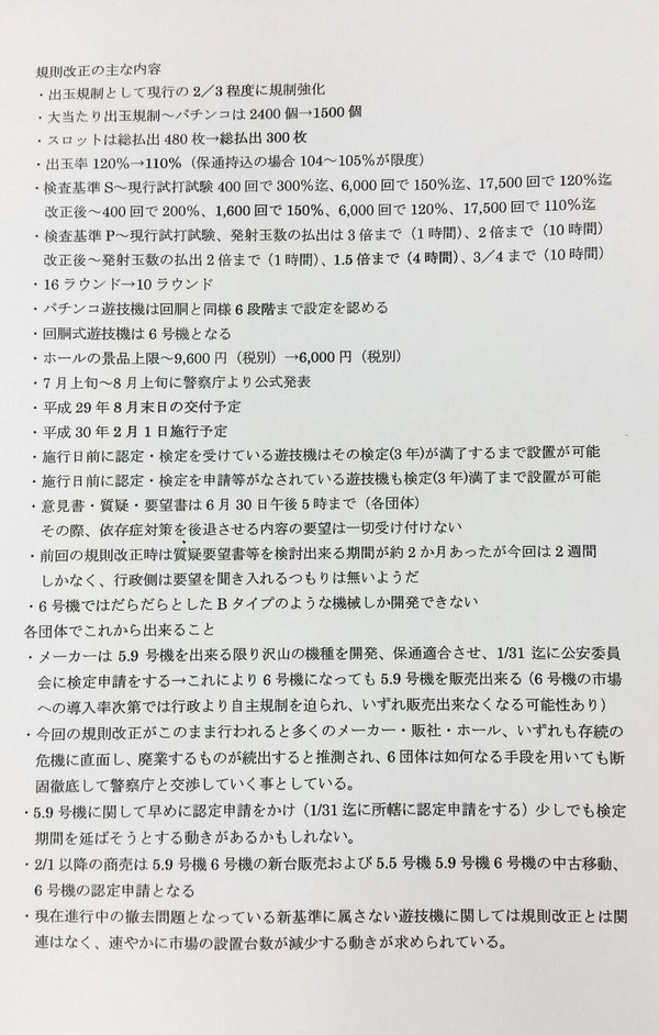 パチンコ今後の規制の内容です。景品上限なども変わります。