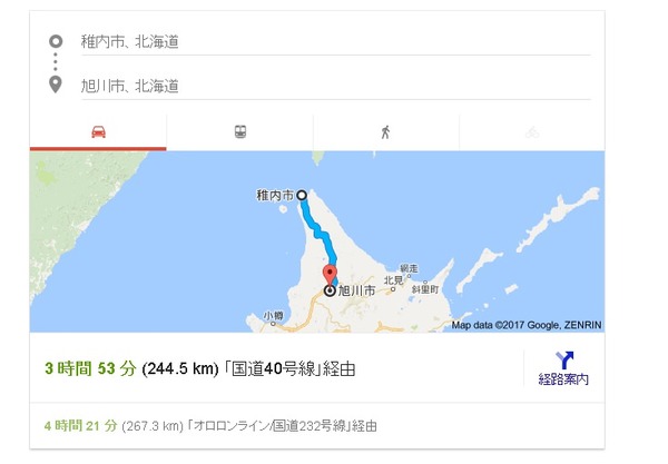 稚内→旭川て東京→越後湯沢くらいあるやん