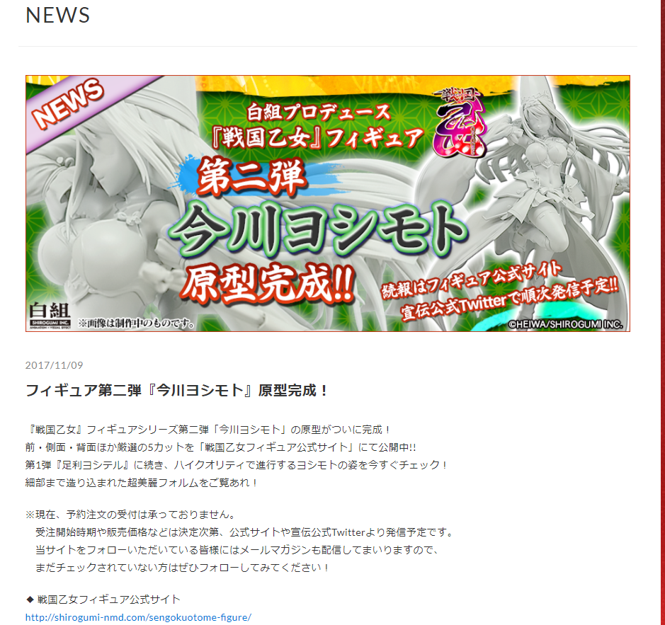 『戦国乙女』フィギュアシリーズ第二弾「今川ヨシモト」の原型がついに完成!