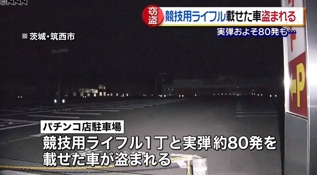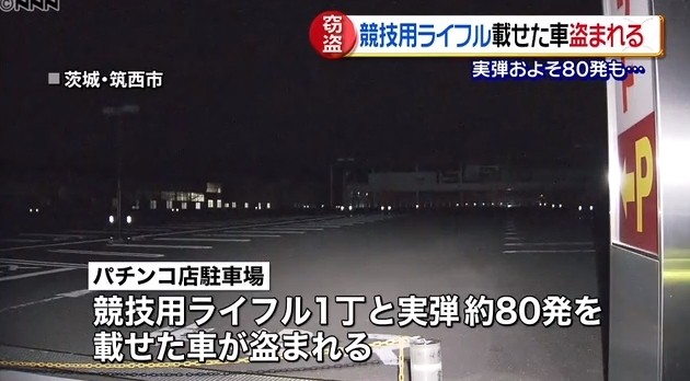 茨城県のパチンコ店の駐車場で、競技用のライフル銃と弾が積まれていた車が盗まれました。ライフル銃は殺傷能力があるということです。