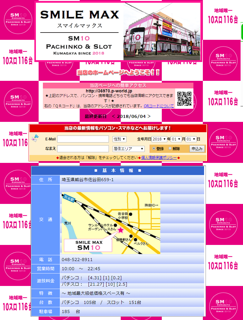 埼玉県熊谷市のスマイルマックスというパチンコ店のHPより