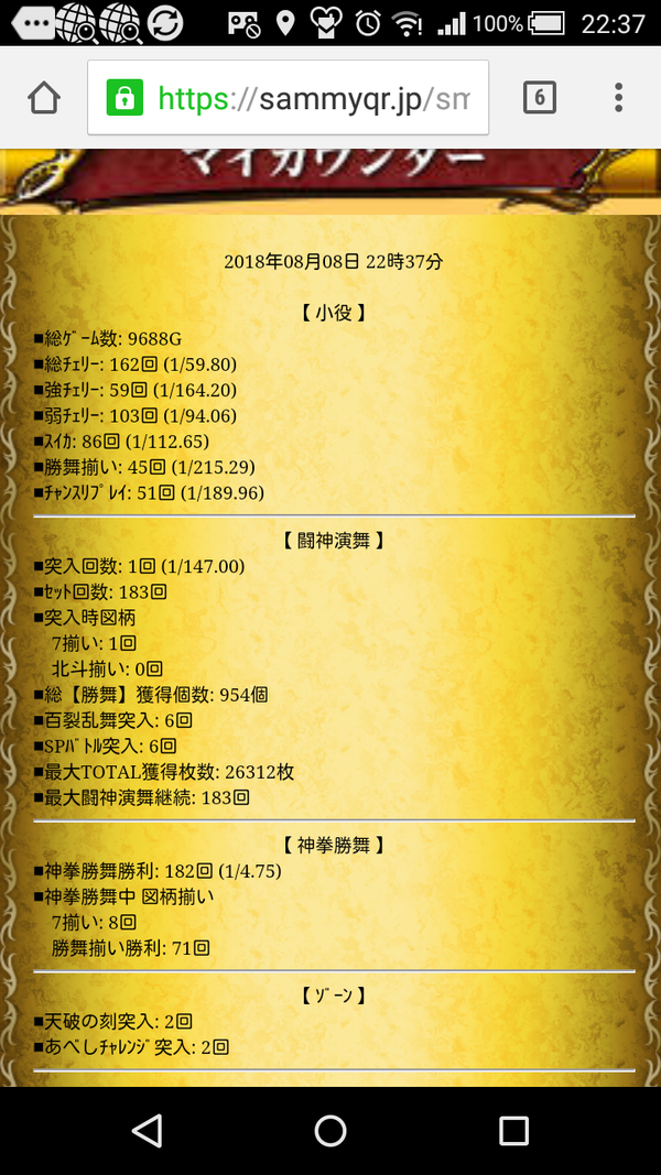 256手前で当たったけど、スペシャルエピソードからの七揃いで、推定ATレベルは4