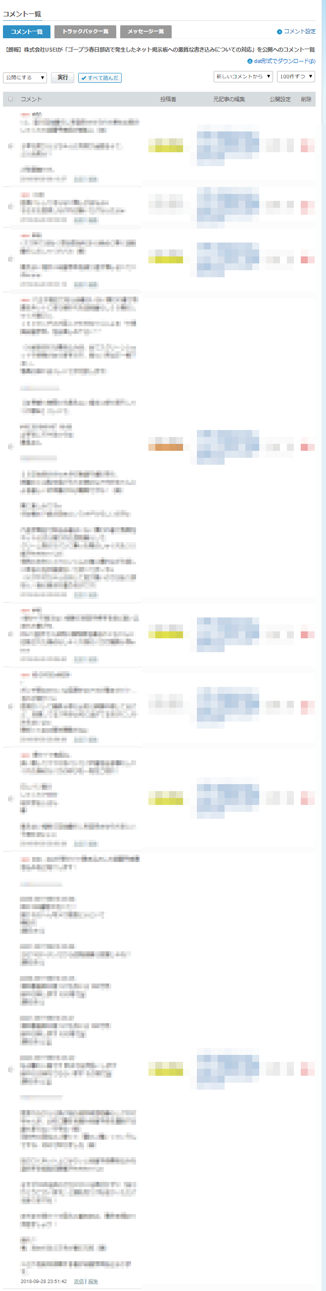 ちな前回の記事のコメントの管理画面のスクショ(閉鎖済み)