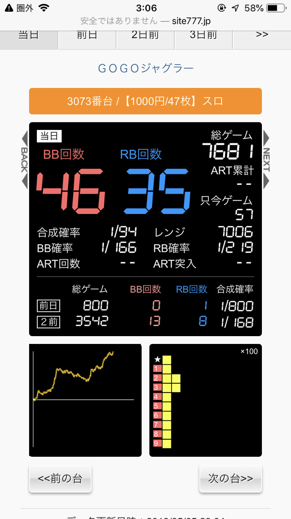 下見しておいてよかった。差枚4000枚ゲッツ!!出玉もそうだけど読み筋が当たって嬉しいぜ。