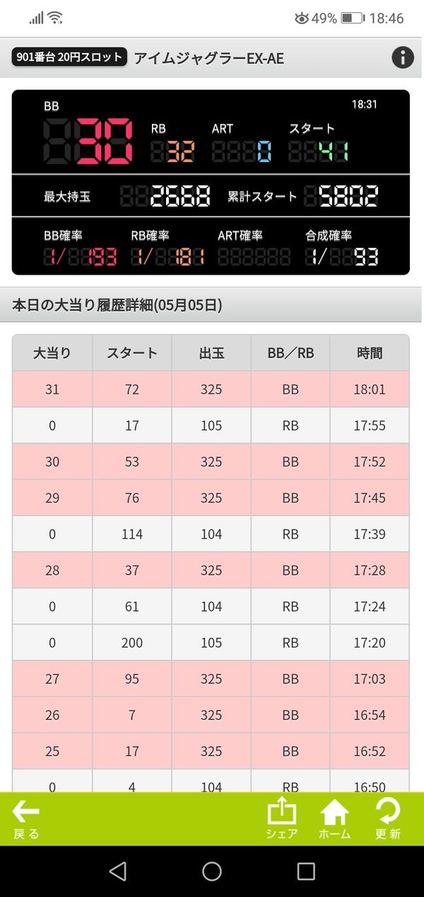 200台以上ある店でこぜ6の台アイム2台とゴージャグ 1台だけやったわ。俺は17時からファンキー打ってビッグ42のバケ21やったわ。合算は135。楽しかった。