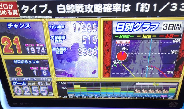 今日のは1回もA天行かないし白鯨間浅いしヤレるか?!思ったけど鯨勝てねえ勝てねえ