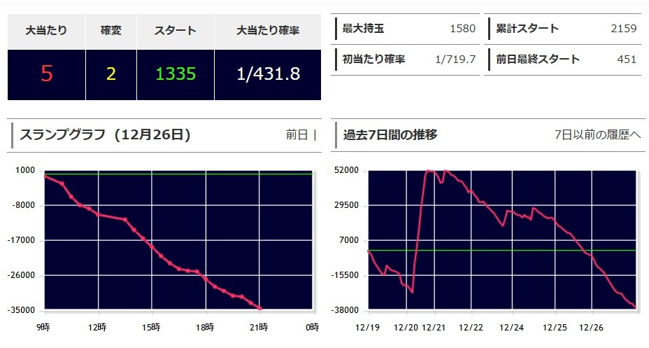 毎日一回は1000ハマリして2週間ほぼ毎日10万円以上飲み込んでたのにある日突然103連の75000発出てまたグラフ真下に直下してた