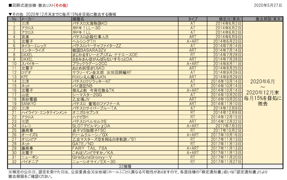 ハナビ系やリノはAタイプに含まれませんでしたね。2021年途中までのせておきます。#スロット#5号機#検定切れ認定切れ pic.twitter.com/ROe0qvn9zF