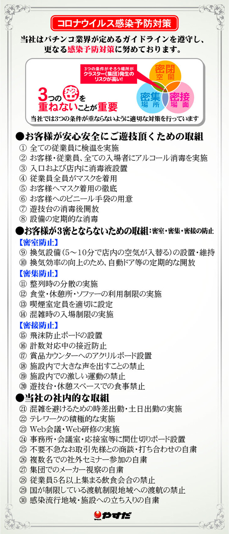 安田屋のHPによると従業員3名が感染、全面消毒と全従業員のPCR検査の為の休業みたいやね