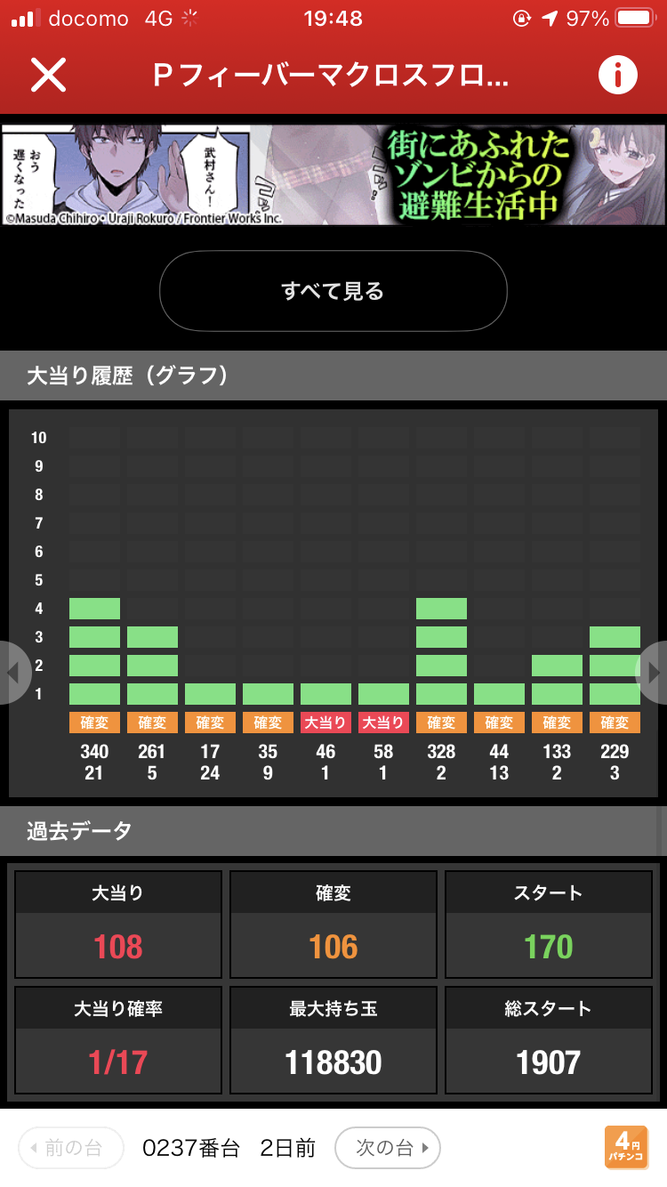 当たり100回越えとる