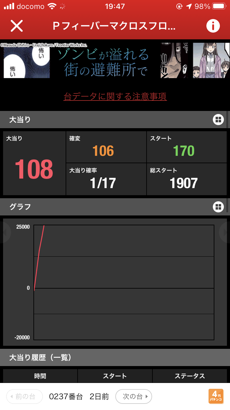 初打ちで、さくっと初当たり2回のそのうち一回突破したけどスルー
