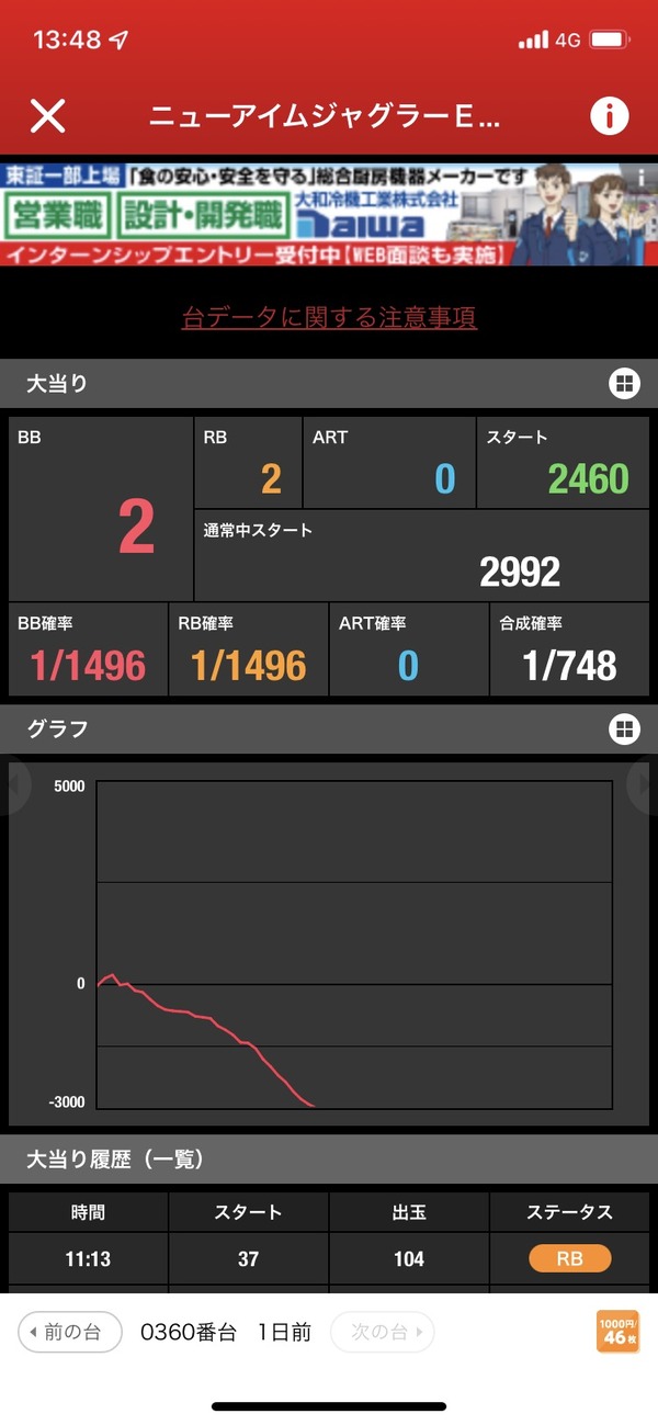 オレの最高ハマりが11倍、負けたorz