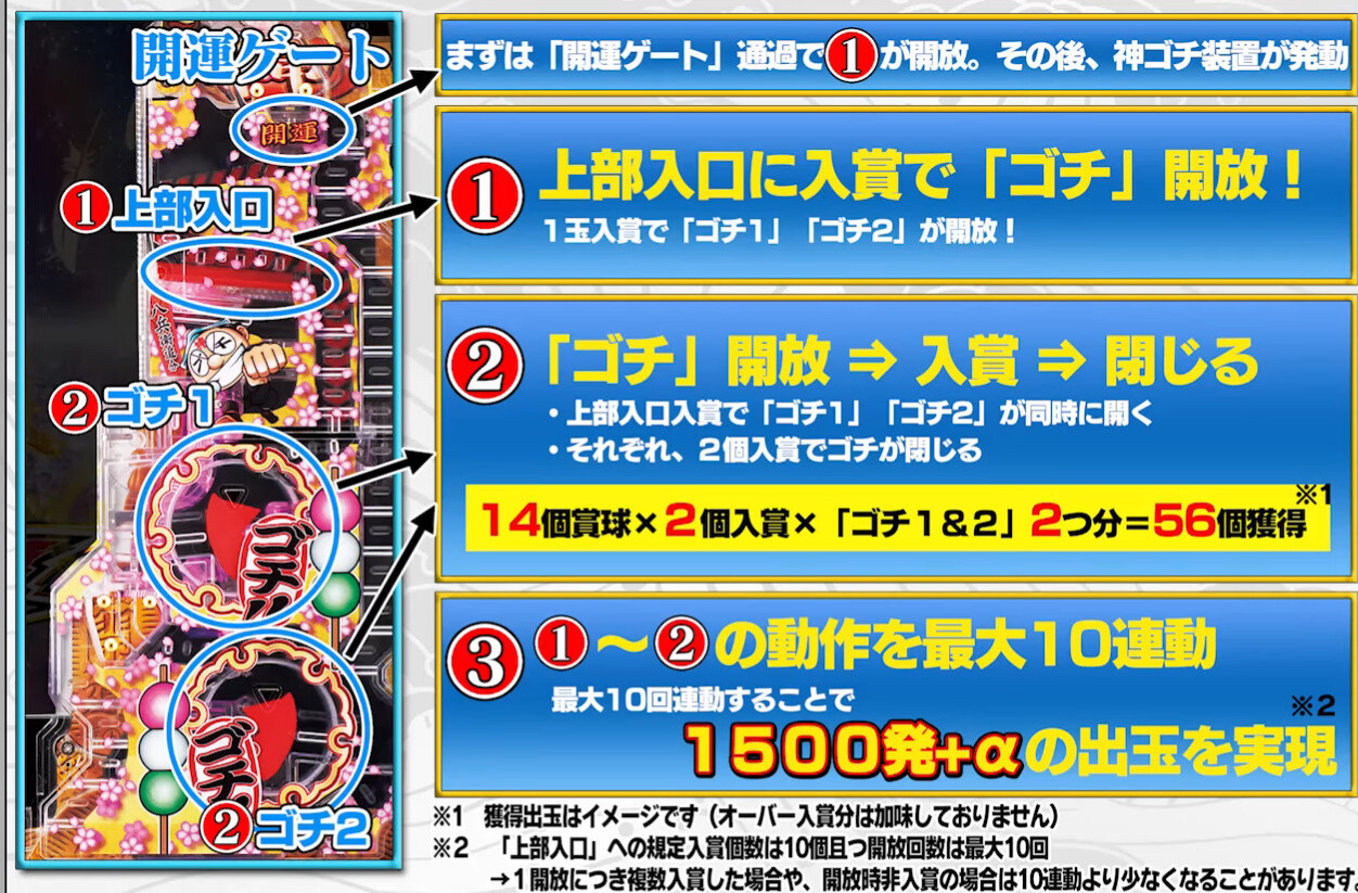 ※1…確変割合50%、時短30回時引き戻し率約14%、残保留4個(最大)時の引き戻し率約2%の合算値。