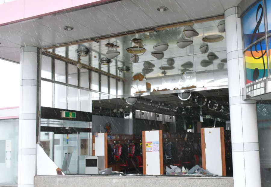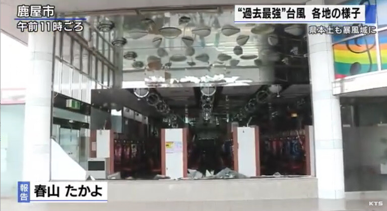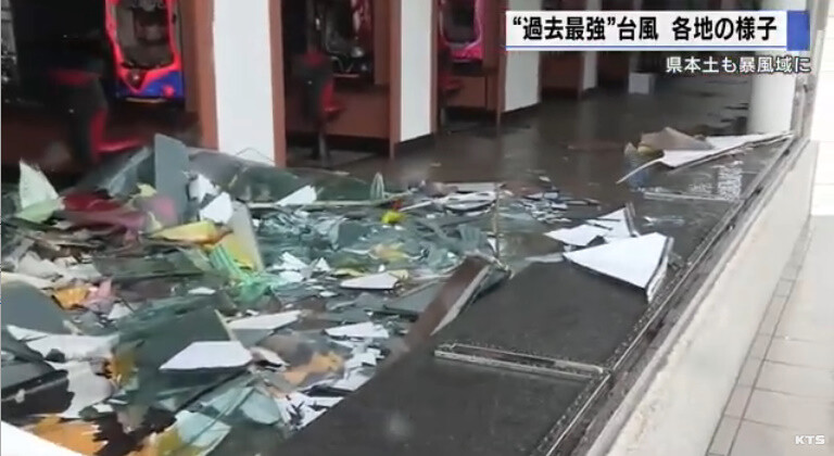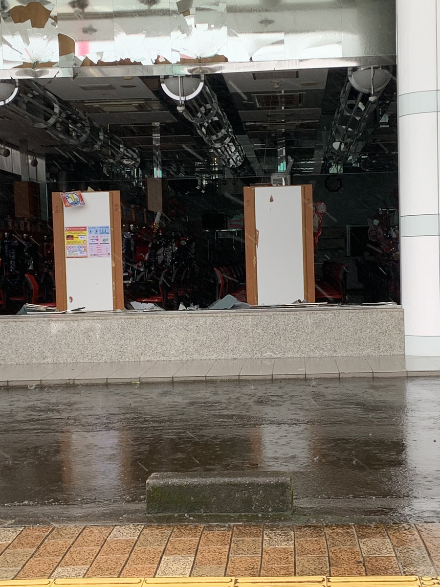 ニュースでやってたが店長が事務所にいて、大きい音したから見に行ったら風でガラス窓粉々になってて吹き飛ばされてたんだとよ
