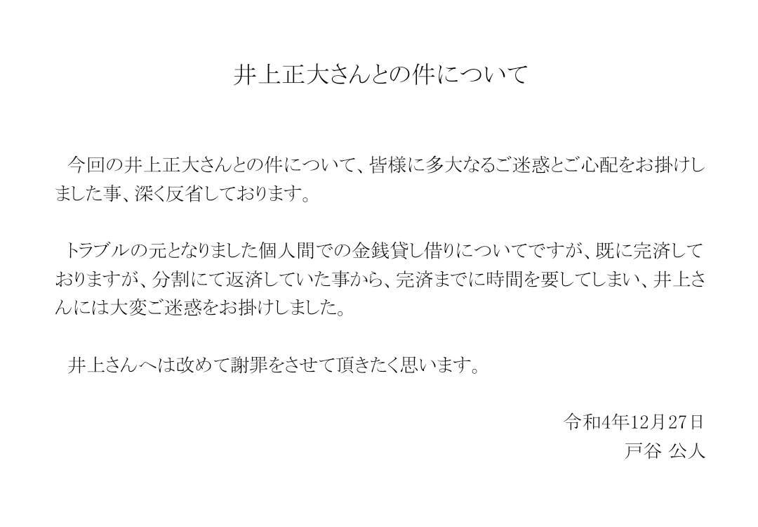 — 井上正大 (@MAAAAAAAASAHIRO) December 27, 2022
