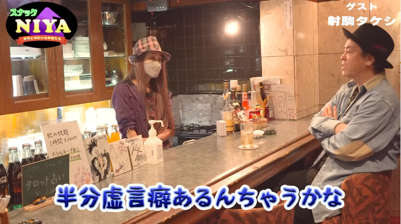 スナックNIYAとかいうYouTube見たら射駒さんに性格悪い、根が腐ってるって言われてましたね。動画では落ち着いた感じで喋って感じ良く見えるけども、裏ではそうでもないんかな