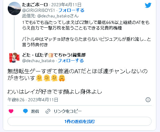 — レオ(やっぱり俺の左隣は出る) (@REO_slokichi) April 12, 2023