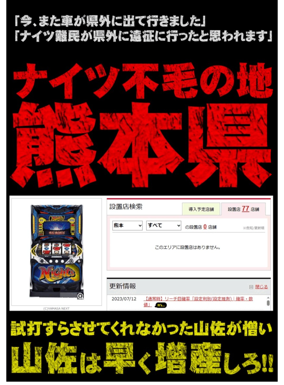 山佐は直近の5機種位を5万円位でナイツと下取り交換しろ!!どうせどの台も稼働してないんだし
