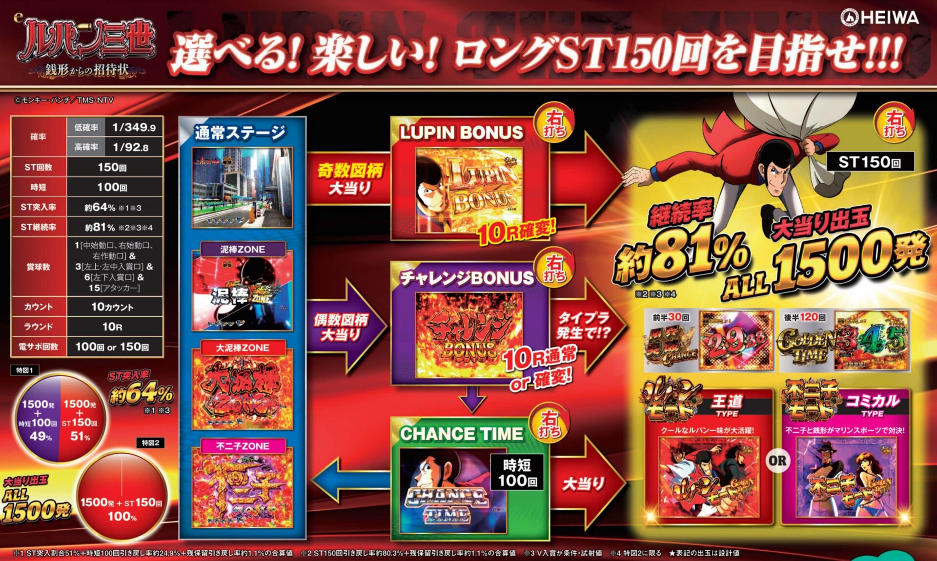1.8%…エヴァなら3R+ST、ルパンなら10R通常→時短引き戻しでST(ルパンの方が2550発得する)