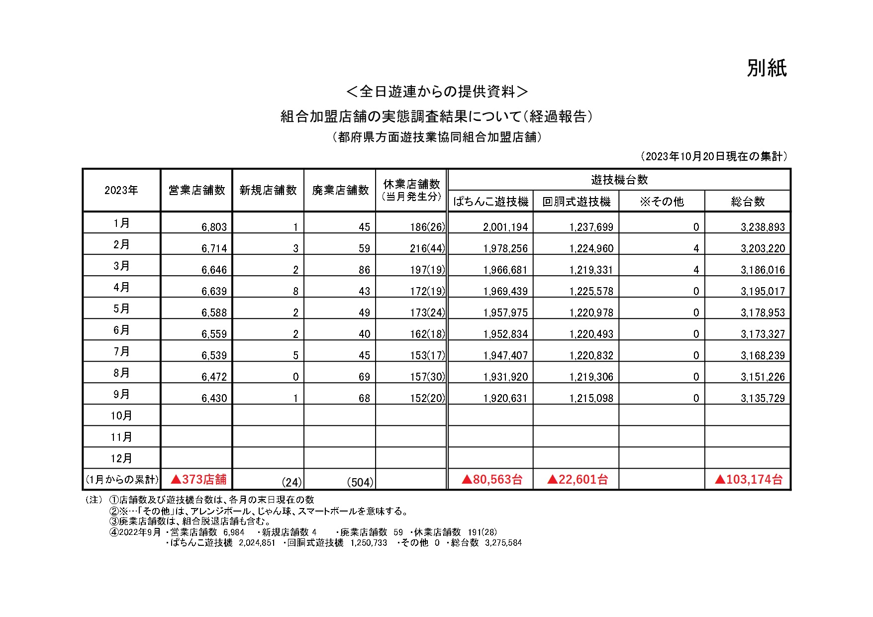 ホール組合加盟店舗調査最新版が公開→9月までに504店舗が廃業、遊技機は約10万台減る