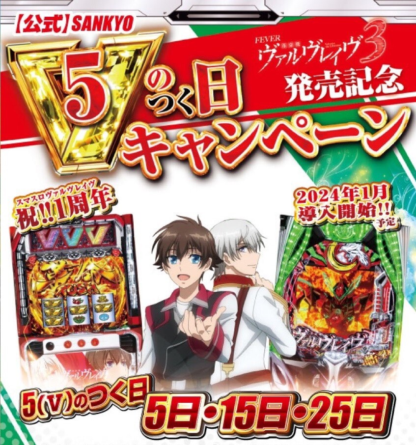 明日は“5のつく日”キャンペーンの日!お見逃しのないように♪#SANKYO #ヴァルヴレイヴ pic.twitter.com/Vo5ppSW8Bp