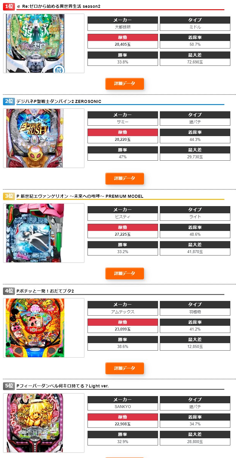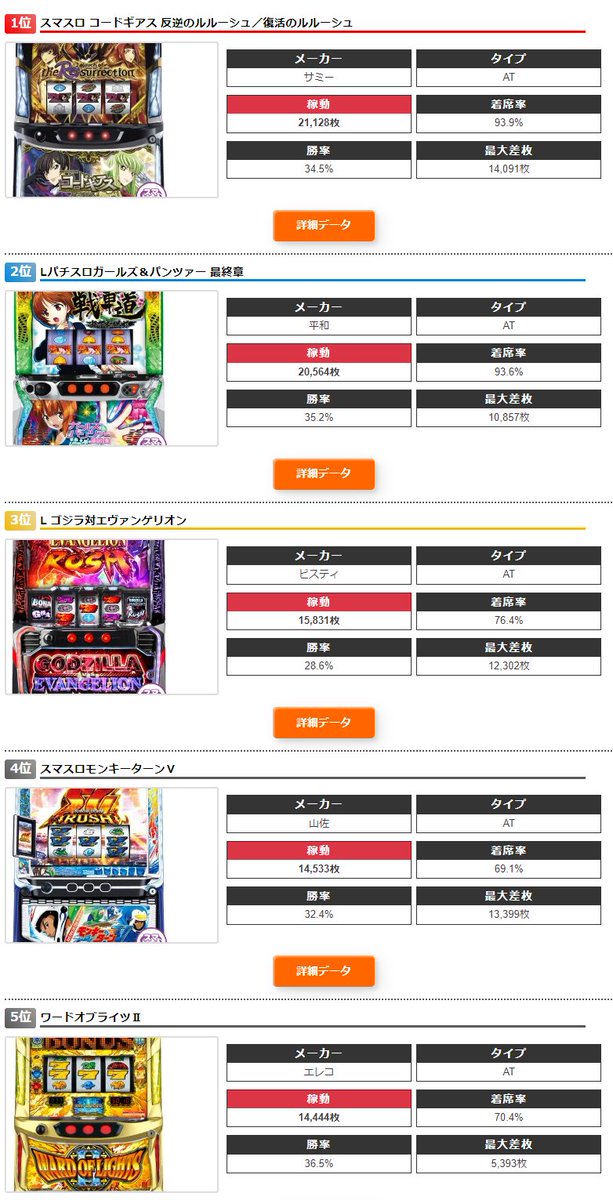【朗報】2月5日の新台稼働データが公開 パチ1位→ダンバイン2甘、スロ1位→ギアス