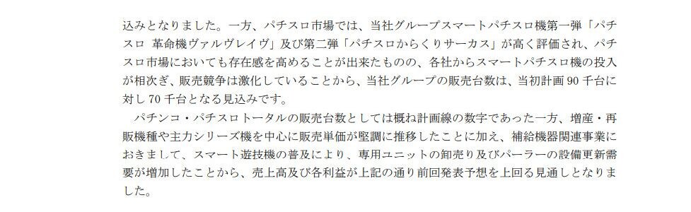 増産・再販機種を中心に販売単価が堅調に推移、スマート遊技機の普及による