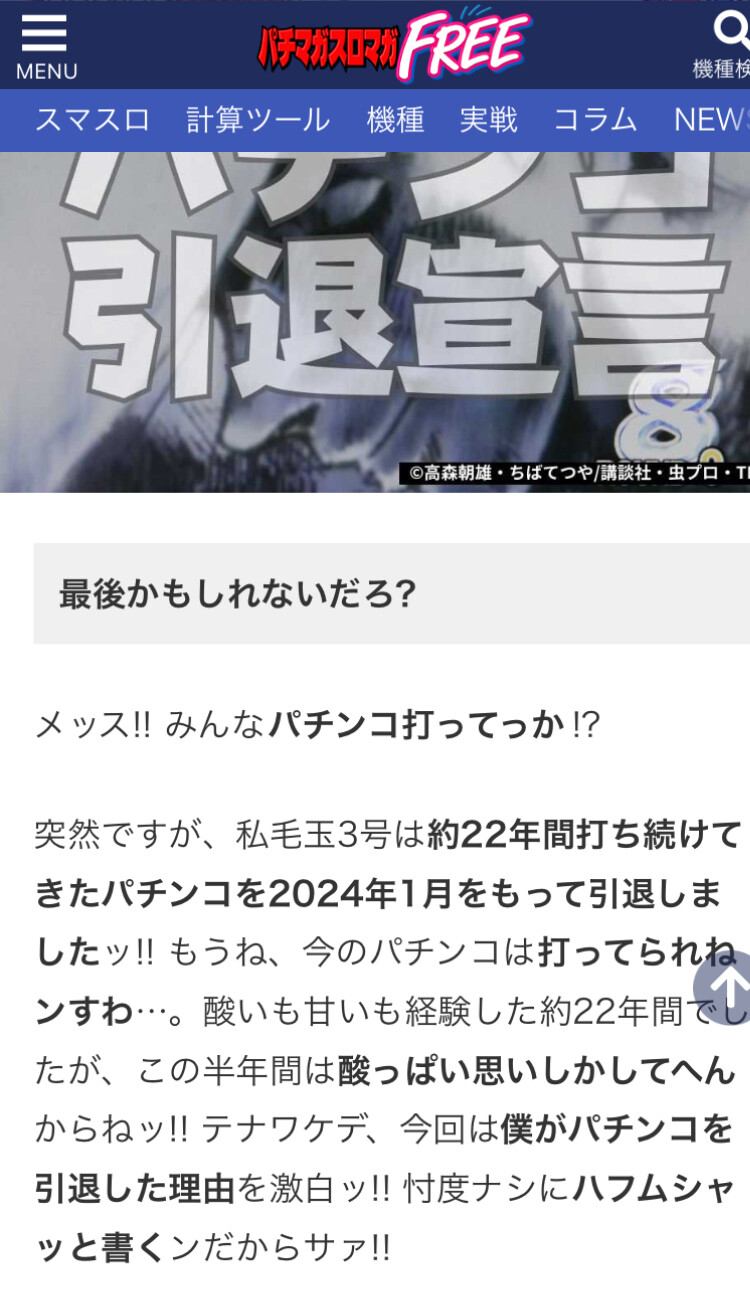 あの毛玉さんが引退ってことはパチンコも相当ヤバイんだろうな