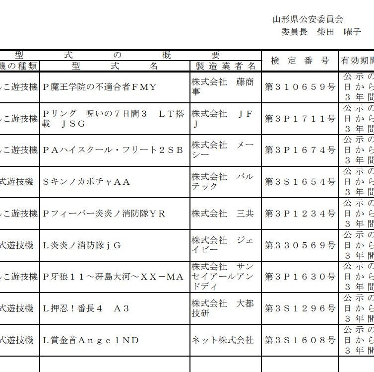 【新台】サンセイ「P牙狼11~冴島大河~XX-MA」大都「L押忍!番長4 A3」ネット「L賞金首Angel ND」が検定通過