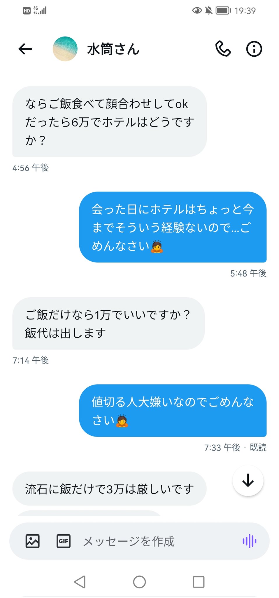 最初会ったら1時間で三万くれるって話だったのに値切られて草 pic.twitter.com/823MihK4zH
